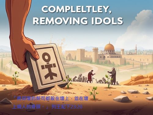 行動: 明天除夕,當我們在打掃家裡的時候,求聖靈也光照我們內心的「死角」。讓我們像約西亞一樣,不只做表面功夫,而是深入內心,把那攔阻我們與神建立親密關係的「邱壇」,徹底拆毀,一塊石頭都不留。