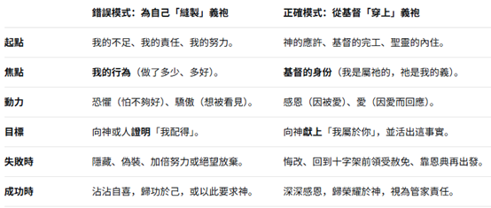 這不是否定好行為,而是校正行為的終極目的:不是為了『縫製』自己的義,而是為了『穿上』基督的義;不是為了向人『展示』,而是為了向神『迎接』。